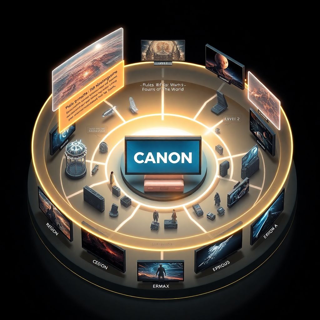 По мере роста популярности проекта вниз по диаграмме добавляются новые ветви, но корень («правила мира + канон») должен оставаться неизменным или меняться осознанно и зримо — иначе доверие аудитории тает, а фанатские теории начинают конкурировать с официальной версией.