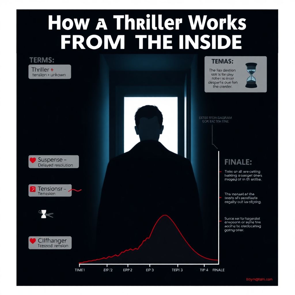 Если отбросить романтику, триллер — это практически инженерный проект по управлению вашим вниманием и тревогой. Сценаристы, режиссёры, монтажёры и звукорежиссёры собирают ту самую кривую напряжения, рассчитывают, когда дать информацию, а когда её спрятать, на каком кадре оборвать серию и какой звук включить, чтобы вы почувствовали холодок по спине.
