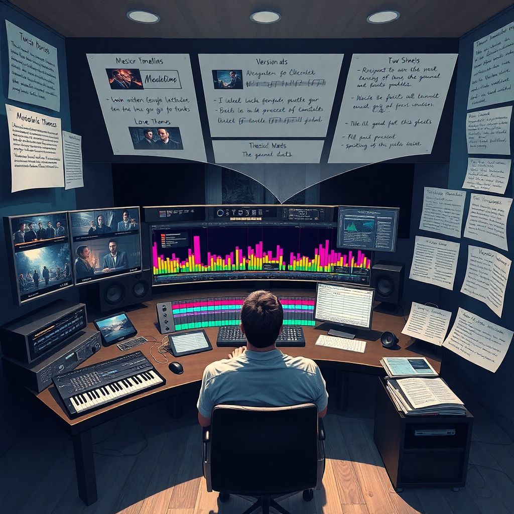 На этапе spotting session режиссёр и композитор проходят серию сцен по тайм‑коду и фиксируют точки входа и выхода музыки, функции треков (подчеркнуть напряжение, создать иронию, «склеить» монтаж), ограничения по звуковому диапазону, чтобы не конфликтовать с диалогами. Далее формируется тематический словарь сериала: лейтмотивы персонажей, гармонические решения для разных локаций или линий, набор текстур (дроны, пэды, перкуссионные паттерны). На стадии черновых версий композитор демонстрирует короткие демонстрации: вместо одной «идеальной» композиции создаются 2–3 варианта подхода к сцене. Только после утверждения концепции начинается полноценная оркестровка и запись живых инструментов, если бюджет позволяет.